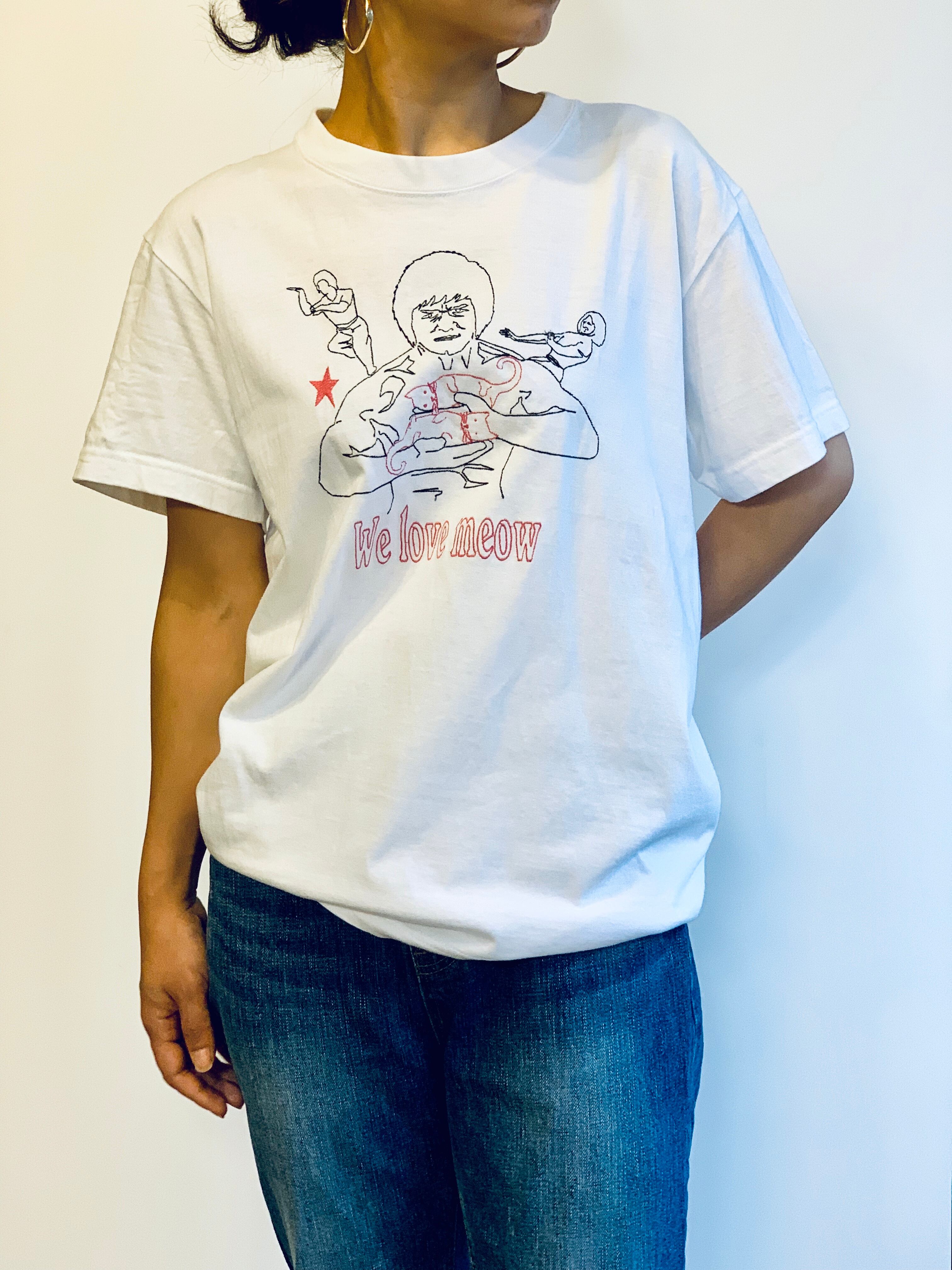 (purr puss) WE LOVE MEOW embroidery T-SHIRTS